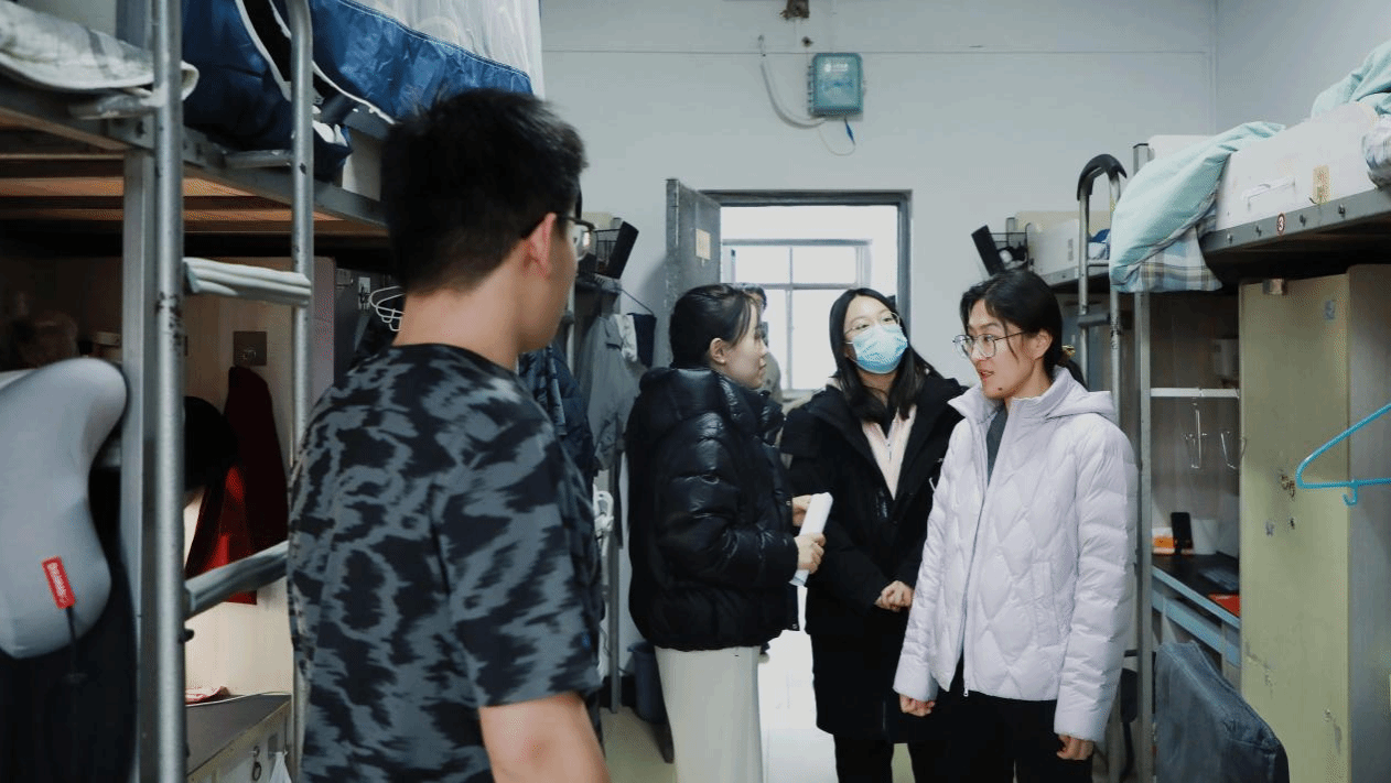 为进一步加强员工宿舍安全管理,营造整洁舒适、文明和谐的住宿环境,切实保障员工的身心健康与校园安全稳定,太阳成tyc党委副书记刘平、团委负责老师李蓓蓓、辅导员潘雪儿带领团委员工会主要负责人,于2025年12月23日深入本科生、研究生宿舍,开展 “安全检查进宿舍,温情关怀暖人心”宿舍专项检查工作。