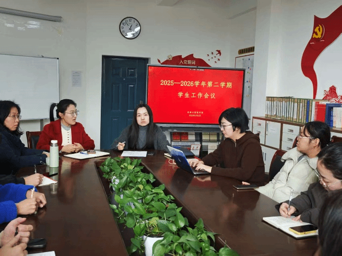 会议围绕新学期员工工作重点进行部署。刘平强调,要深化学风建设,以“前排就座率”为切入点强化学风日常管理,同步前置考研引导,激发员工升学内驱力;要扎实推进就业工作,及时跟进2026届毕业生就业情况,分层分类开展个性化指导与岗位推荐,切实提升就业质量;要强化心理健康保障,动态关注员工情绪变化,做到早发现、早介入、细关怀,织密织牢心理安全防护网;要强化校园安全稳定,聚焦员工宿舍等重点区域,常态化开展消防、用电、防诈、交通安全及意识形态安全教育,切实筑牢思想与行为双重安全防线。