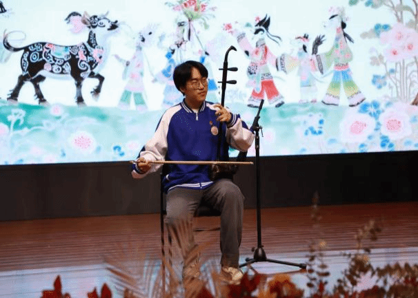 戏曲知识讲解搭配击鼓传花问答环节,将戏曲行当等知识点融入趣味游戏,同学们在欢声笑语中解锁戏曲知识。悠扬婉转的二胡独奏《立春》、刚劲飒爽的花枪、舞剑等表演接连登场,让同学们全方位领略传统艺术的多元风采,活动最终在温馨治愈的歌曲中圆满落幕。