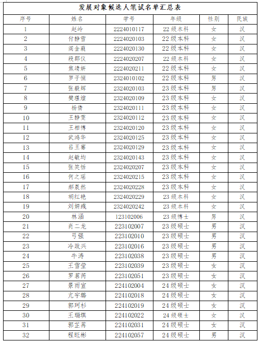 附:发展对象候选人笔试名单汇总表