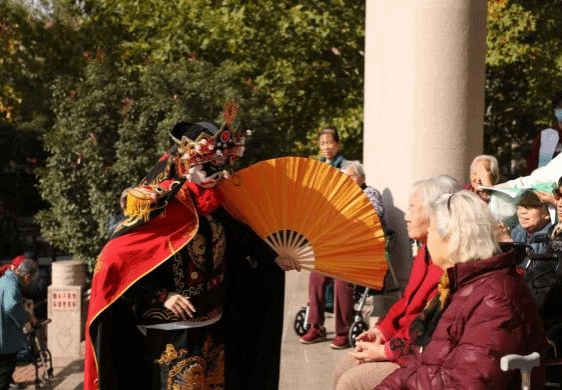 活动伊始,志愿者用经典老歌进行暖场互动,老人们或轻声跟唱,或拍手伴奏,悠扬歌声传递着两代人之间的温情,现场气氛十分融洽。随后,晋风社志愿者为老人们带来一场精彩纷呈的戏剧表演,从变幻莫测的川剧变脸到经典京剧《霸王别姬》、水袖舞段等,专业的唱腔与表演让老人们沉浸其中,深切感受戏剧的独特魅力。
