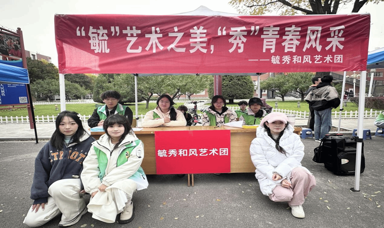 毓秀和风艺术团在现场活动则打造了“艺术互动嘉年华”专区。“ emoji 猜影视剧”趣味抢答和“歌词对错大考验”环节现场歌声、欢呼声此起彼伏。此外,社员们带来了精彩的表演,他们以富有张力的舞姿和动感的节奏,吸引了众多学子当场踊跃报名。