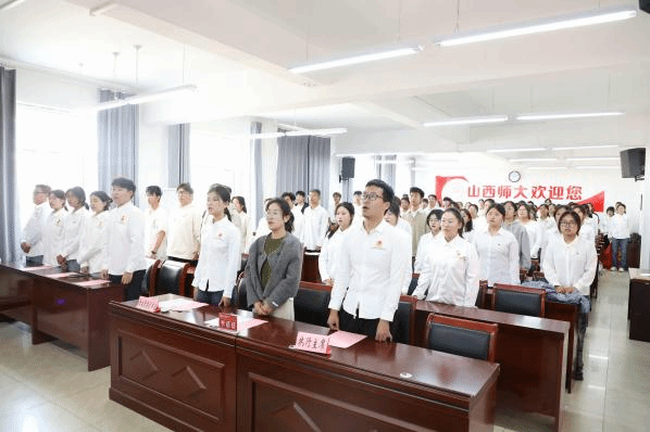 活动伊始,全体参会成员肃立,齐唱团歌。随后,大家在领誓人石格豪同学的带领下重温入团誓词。在团旗下,团员们庄严宣誓,铮铮誓言让大家更加坚定了心中的理想信念。