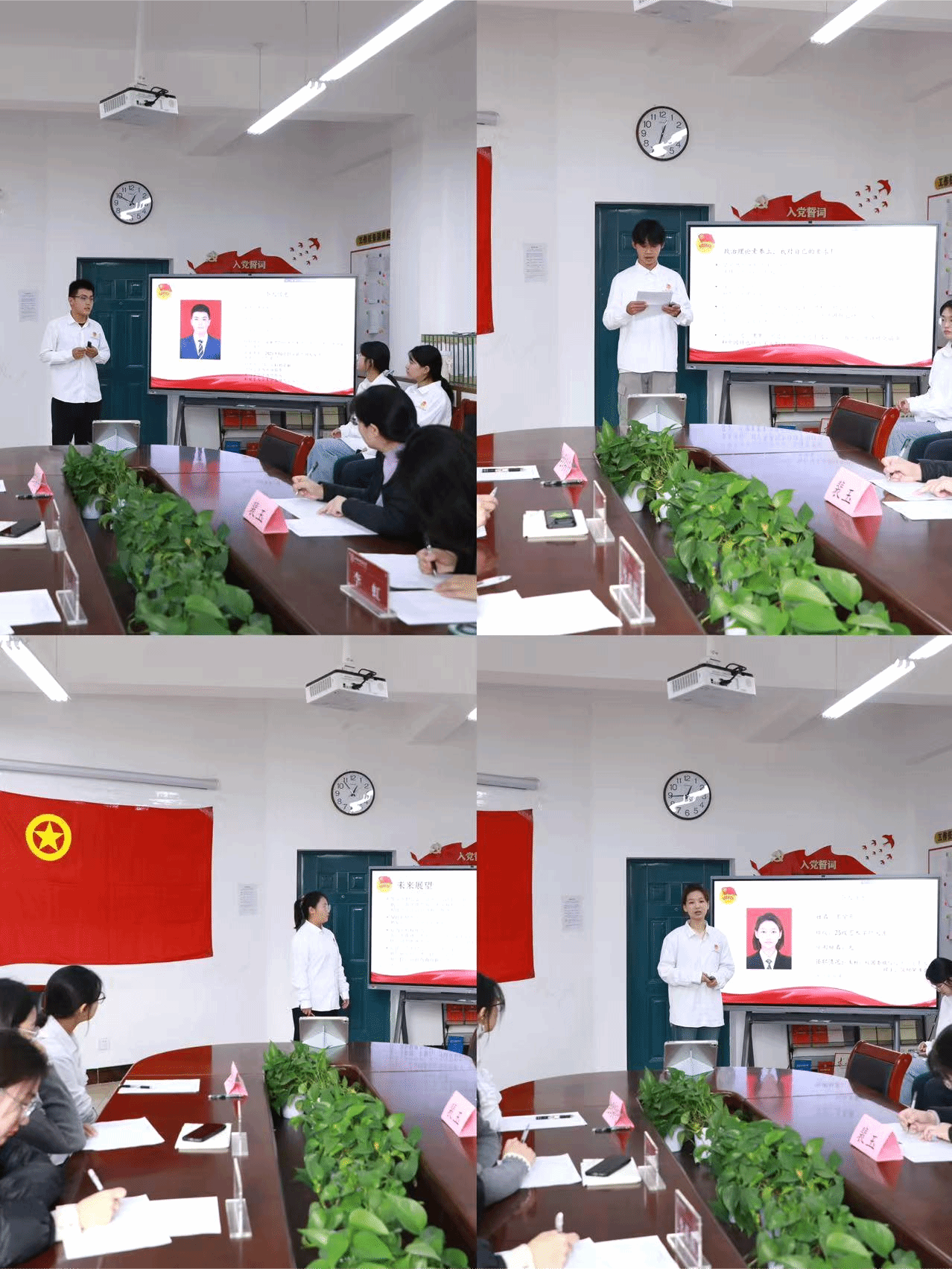 面试伊始,新发展团员们通过PPT,围绕“对共青团的认识”、“思想政治素养”、“在校成就和实践活动”、“个人未来目标和入团规划”四个核心方面进行详细阐述。之后,由李蓓蓓老师、裴玉老师、李虹老师、潘雪儿老师进行评判打分,多维度考察新发展团员的思想认知能力以及综合素养。