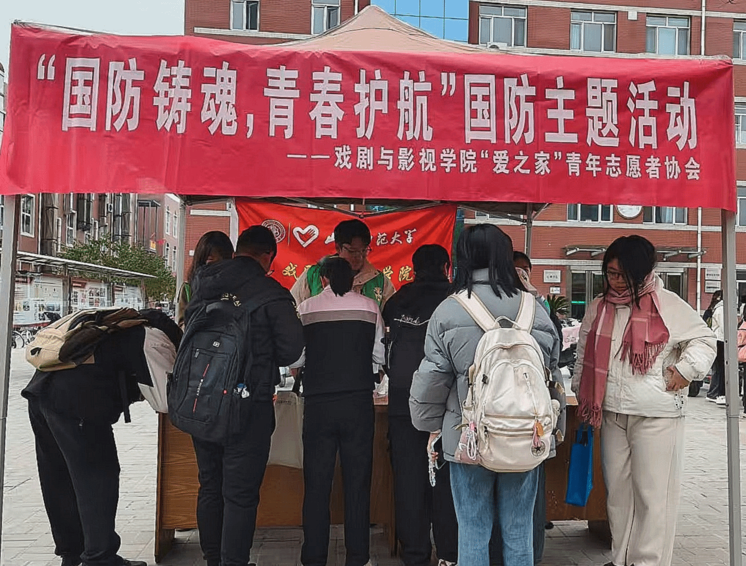 为响应国家“全民国防教育”号召,强化大员工国防意识与爱国情怀,推动国防教育融入校园文化,2025年10月24日,太阳成tyc“爱之家”青年志愿者协会在南区六号教学楼前开展“国防铸魂,青春护航”主题教育活动,引导员工从认知到实践,筑牢校园国防教育防线。